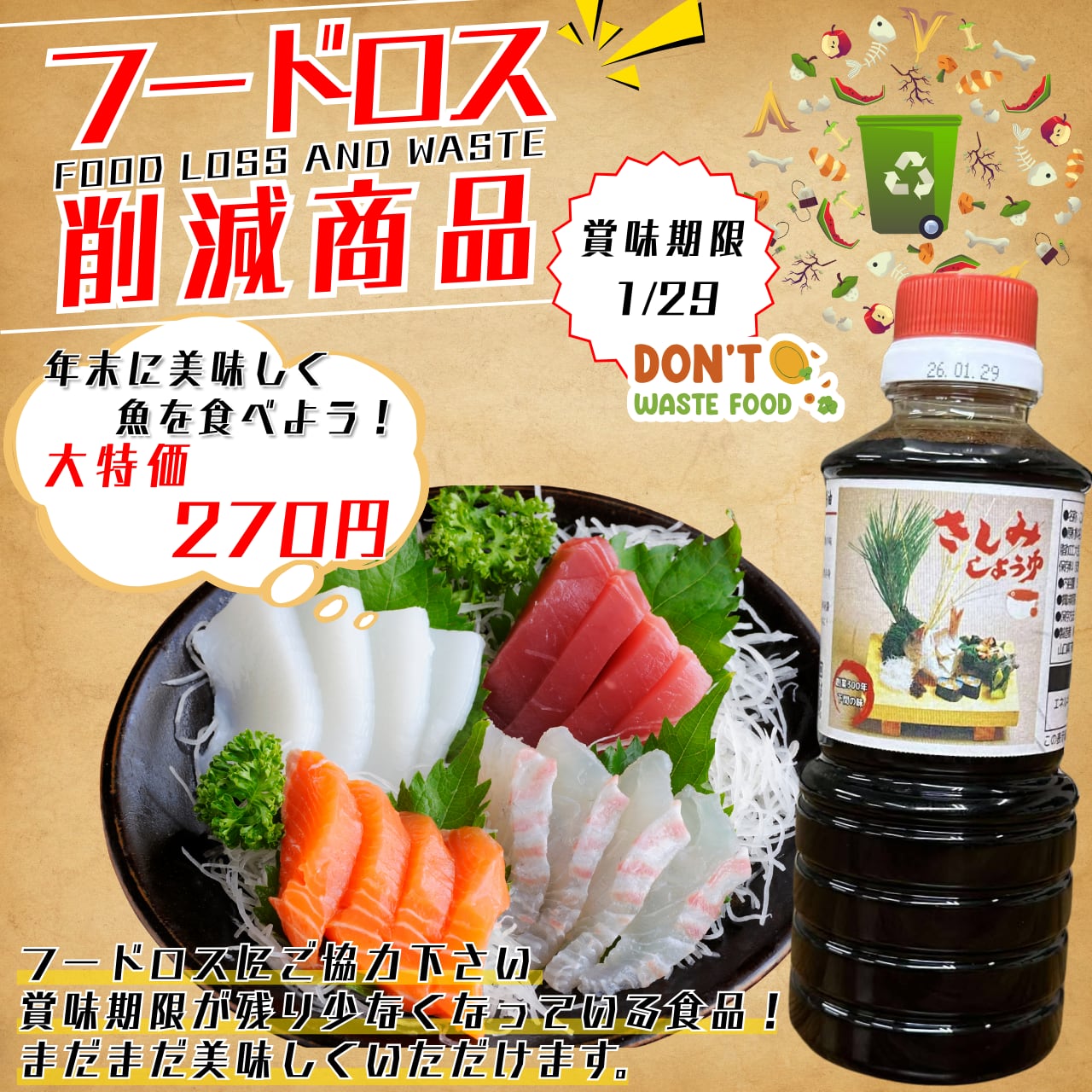賞味期限が迫った【大津屋のさしみしょうゆ】を特別価格にてご提供!