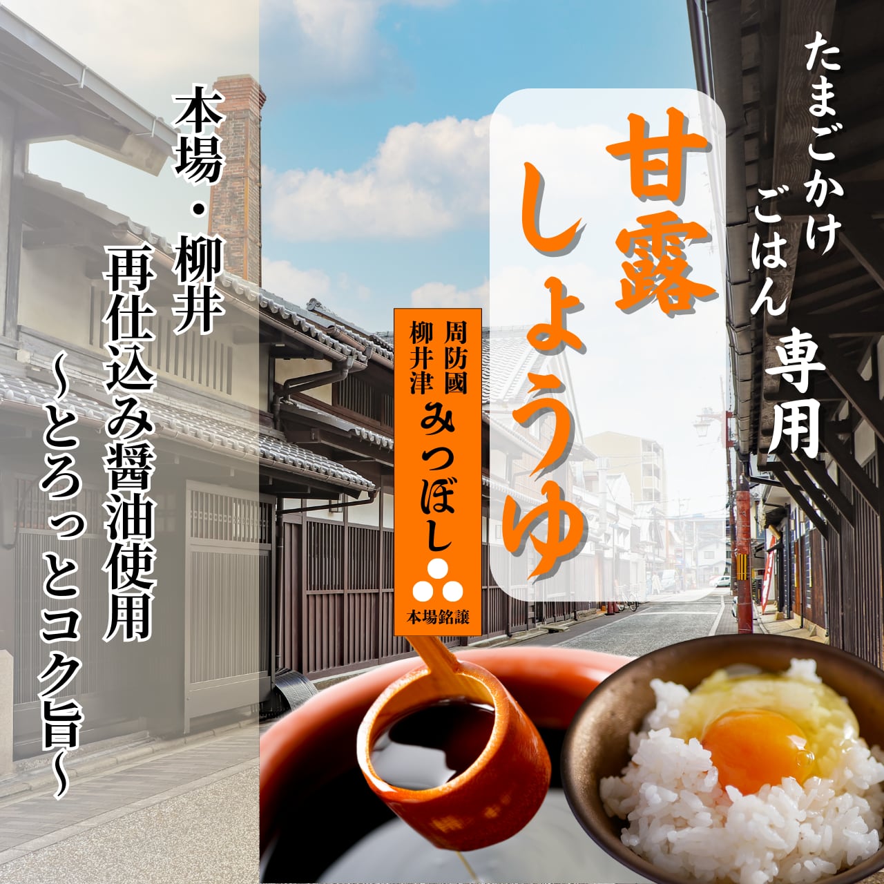 山口県発祥の『濃厚な甘露醤油』×出汁が特徴的な『卵かけご飯醤油』をかけ合わせた事で、醤油と出汁の比率が究極のバランス!